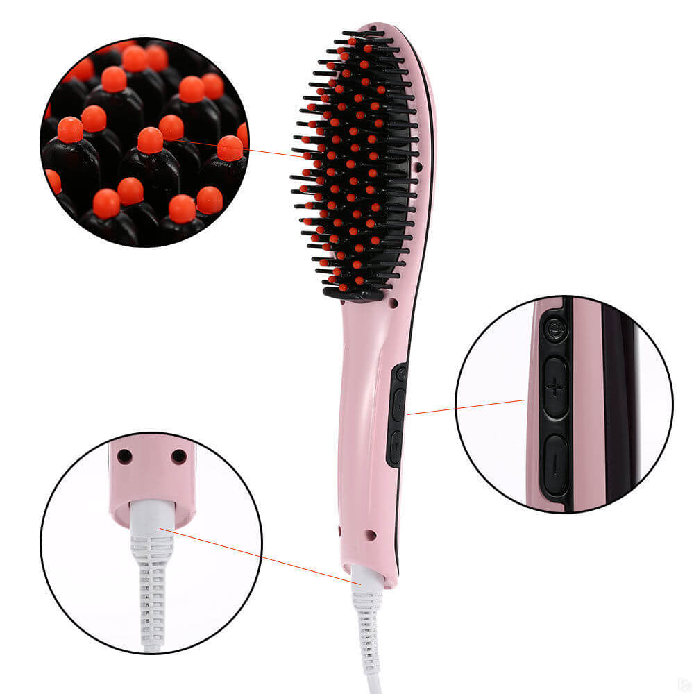 Электрическая расческа-выпрямитель Fast Hair Straightener подходит для любого типа волос. Эта расческа поможет Вам быстро и легко выпрямить волосы любой длины в домашних условиях. Все это благодаря тому, что расческа сочетает в себе сразу два полезных прибора: утюжок и массажную щетку. Благодаря уникальному покрытию турмалином, прическа получает красивый, здоровый блеск, а также улучшается рост волос.