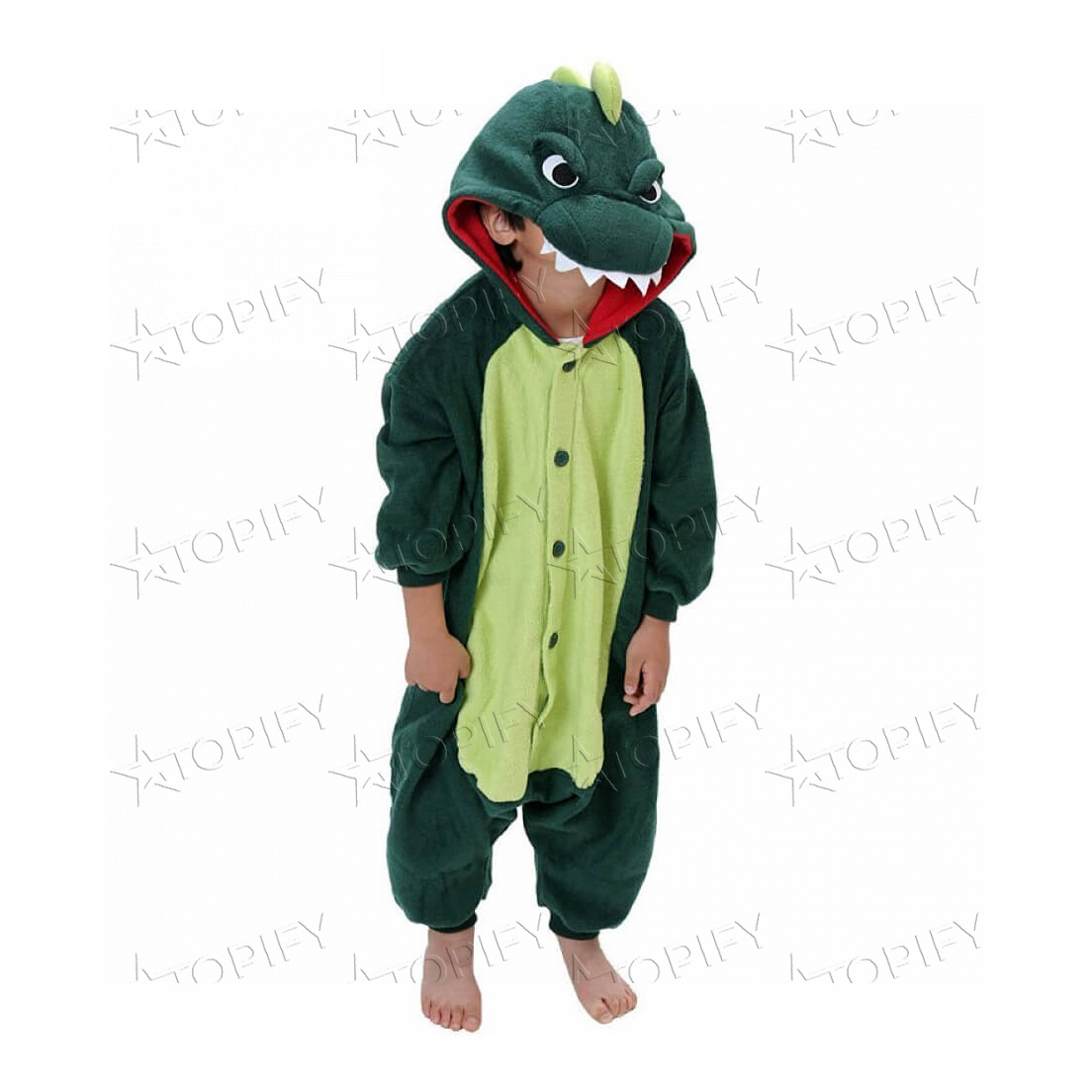Кигуруми Зеленый Динозаврик выполнен из качественного материала велсофт, который приятен на ощупь и прост в уходе. Капюшон костюма выполнен в виде головы динозавра, а объемный хвост еще больше увеличивает сходство с мультяшным героем.